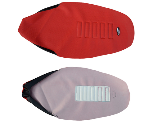Красный чехол для сиденья мотоцикла.
