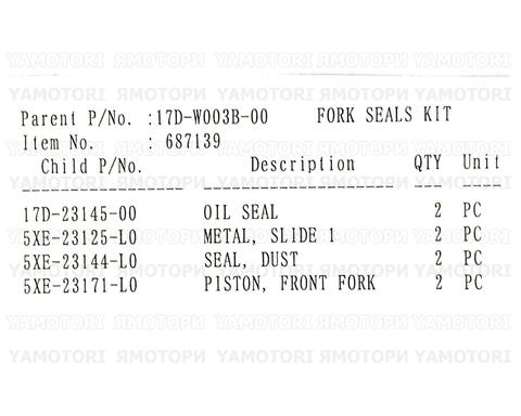 Ремкомплект вилки Yamaha 17D-W003B-00-00