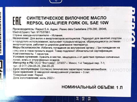 Масло вилочное синтетическое REPSOL QUALIFIER FORK OIL 10W (1L)